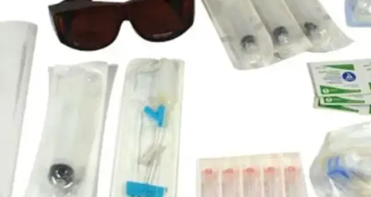 This PDT (Photodynamic therapy essentials) contains all the essentials needed for performing infusions. Each kit includes - (3) 10cc syringes - (1) 30cc syringe - (1) extension set - 43", 2 - (1) filter - 1.2 micron - (1) catheter set - 22 ga, .75 x .9 x 19 - (5) needle, 18 ga. - (6) alcohol prep pads - (1) amber solar shield - (1) PDT bag - (1) bracelet ID band